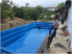 4- آب گیری استخر در محل و نشست کاسه استخر در محل نصب و تثبیت آن در محل نصب